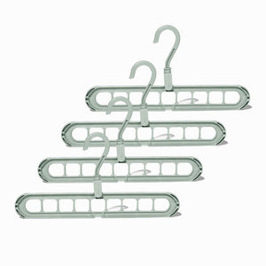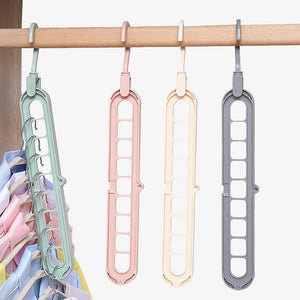 This Space Saver Hanger has 9 holes to hang clothes vertically. The convenient rotation and folding design could greatly save your cupboard space. It's a must-have item for your home.