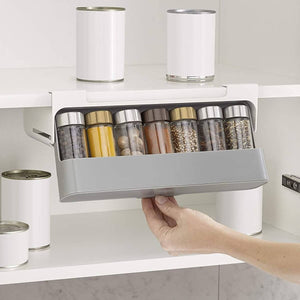This innovative drawer turns the unused space beneath your shelf into a funky pull-out compartment where you can beautifully display up to 7 Spice Jars.