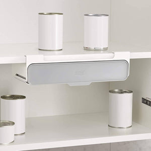 Easy Installation:No screws or drilling needed. Our Spice Cupboard drawer uses non-marking 3M™ VHB™ tape to stay secure and is suitable for kitchen units over 32cm (12¾ inches) wide and shelves under 2cm (¾ inches) thick. All you need to do is remove the backing from the tape, slide the hooks over the clean and dry shelf edge, then press firmly for 30 seconds. 24 hours later your drawer is good to go!